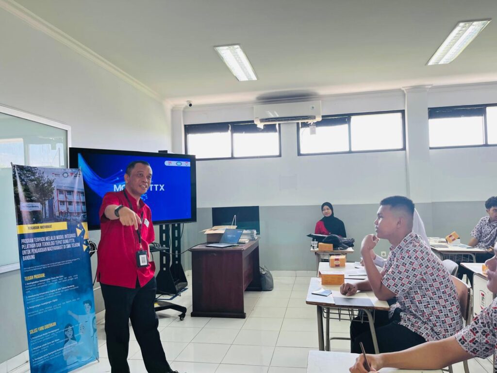 Bandung, 15 Mei 2025 – Dalam upaya meningkatkan kapasitas pendidikan vokasi di bidang teknologi informasi dan komunikasi, Telkom University menggelar kegiatan Pengabdian kepada Masyarakat bertajuk “Program Terpadu melalui Modul Integrasi Pelatihan dan Teknologi Tepat Guna FTTx untuk Pengabdian Masyarakat di SMK Telkom Bandung”. Kegiatan ini dipimpin oleh Ir. Akhmad Hambali, M.T. bersama tim dosen dan mahasiswa dari Fakultas Teknik Elektro.