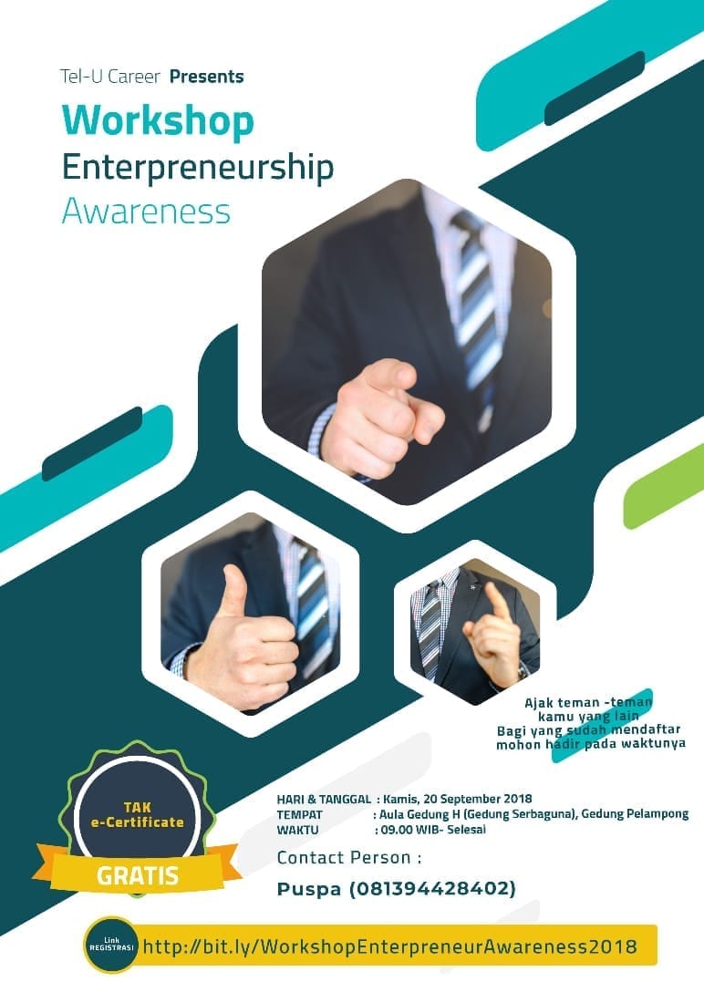 Register : http://bit.ly/WorkshopEnterpreneurshipAwareness2018